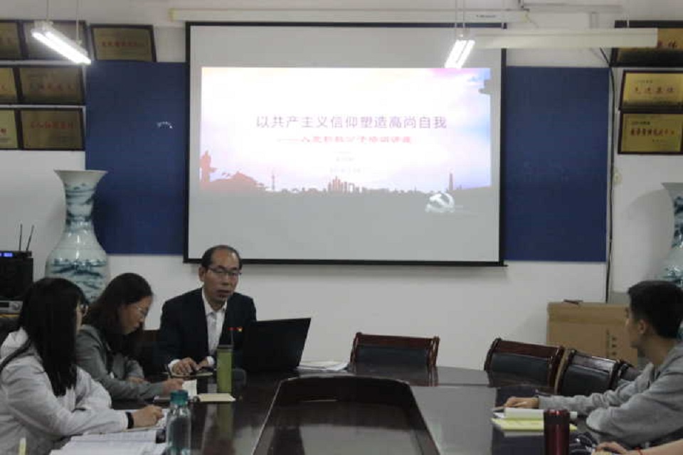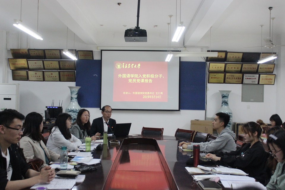 5月14日,kaiyun体育网页登录入口外国语学院于学院会议室举行“以共产主义信仰塑造高尚自我”专题党课。学院党委书记王仁高主讲,学生党员、党员发展对象和入党积极分子参加学习,辅导员刘艳主持。