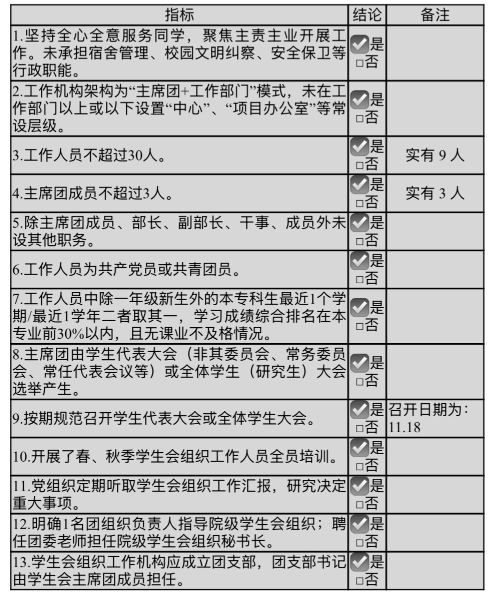 为落实共青团中央、教育部、全国学联联合下发的《关于推动高校学生会(研究生会)深化改革的若干意见》,并结合《关于巩固高校学生会(研究生会)改革成果的若干措施》文件要求,接受广大师生监督,现将我院2024年度学生会改革情况公开如下。