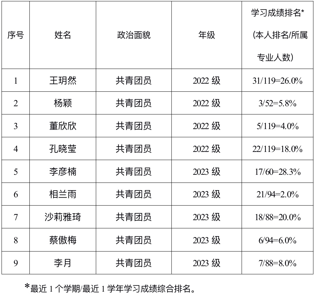 5.成绩排名在专业前30%以内,且无课业不及格情况。