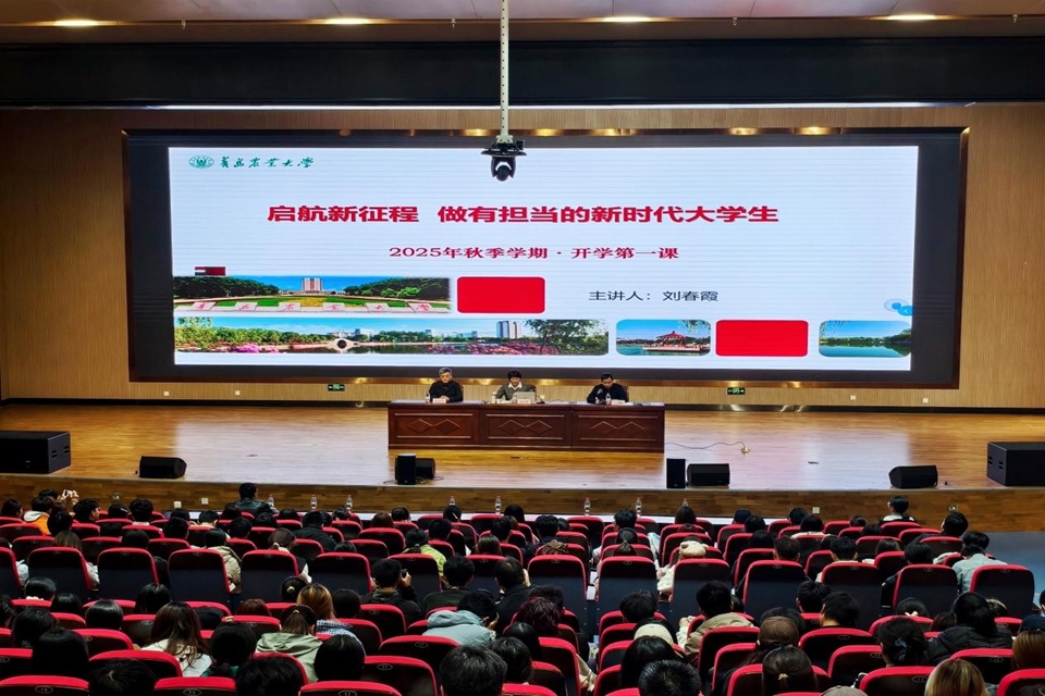 10月30日,kaiyun体育网页登录入口党委副书记刘春霞在平度校区大学生创新创业报告厅为外国语学院和经济管理学院(合作社学院)2025级新生讲授开学第一课,主题为“启航新征程,做有担当的新时代大学生”。活动由外国语学院党委书记王效仿主持,经济管理学院党委书记张德锋、两个学院团委书记、辅导员及2025级400多名学生参加。