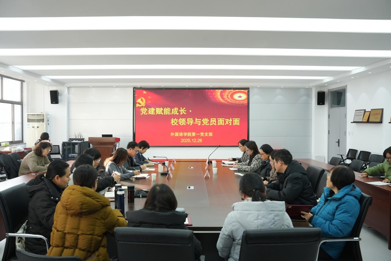 12月26日,外国语学院第一党支部在城阳校区文经楼C220召开“党建赋能成长·校领导与党员面对面”调研座谈会,校党委副书记刘春霞出席会议并指导工作,会议由第一党支部书记李卿主持,学院党委书记王晓雷及党支部全体党员参加。