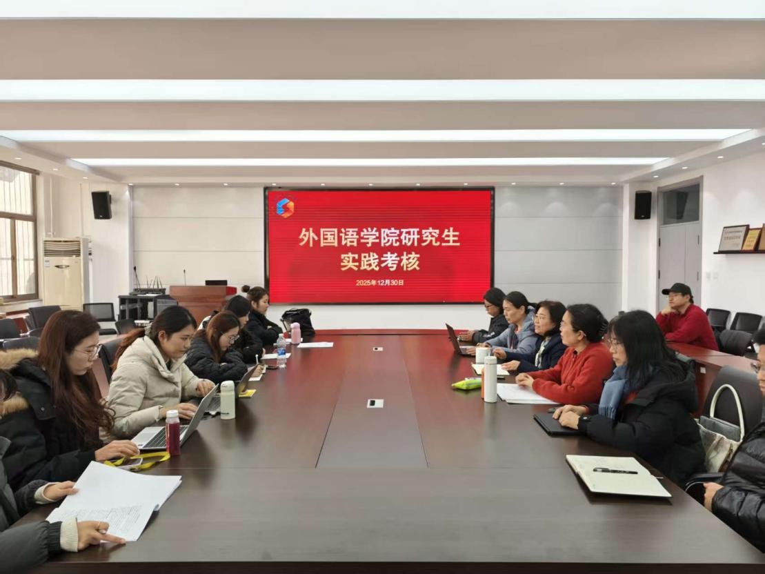 为进一步规范研究生培养过程管理,督促研究生按计划推进学业进度,全面提升研究生培养质量,外国语学院于12月30日在文经楼C220会议室开展2023级硕士研究生专业实践考核工作。学院对此项工作高度重视,专门成立考核组。考核组成员包括学院导师高秀雪、王珍、姚雪丽、鞠志勤、鲁华山、梁钢, 2023 级全体硕士研究生参加考核。