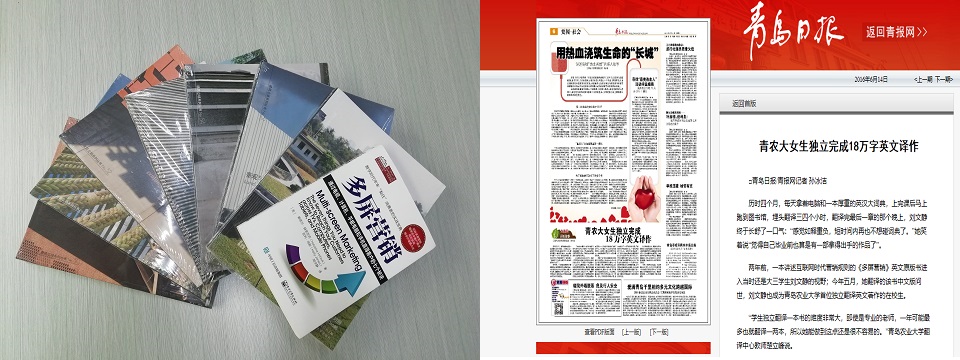实践积累激发了创业潜能。翻译中心的创业翻译团队承担“互联网+”时代的大学生创业项目,承接了知识产权翻译、中国科技部分词等项目,学生独立或参与翻译了《多屏营销》、《社区建筑》、《景观与建筑》、《地域文脉与大学建筑》等10部著作,出版翻译文字达23万,获得较好的经济效益。